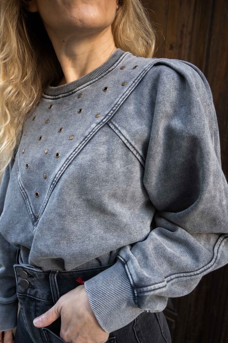Chaqueta oversize, con bolsillos decorados con tachuelas. Adorno de cadena en el delantero. Lleva una calavera de terciopelo bordada, símbolo de rebeldía pero también de la fugacidad de la vida. Si le sumas los detalles de encaje, la prenda se convierte en un emblema de elegancia con carácter, de distinción con un aire de misterio. Delicadeza y fuerza en una misma prenda. Alma y coraje. Puedes llevarla para levantar cualquier look, pero la hemos diseñado a conjunto con el pantalón de cadenas de esta misma línea