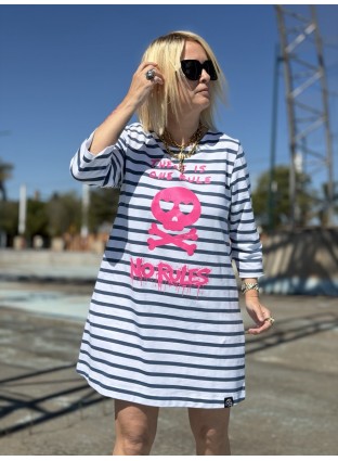Vestidazo No Rules!! Rayas navy + rosa flúor = contraste brutal! Felpa ultra ligera y súper finita, perfecto para primavera y verano: cómodo, fresco, evasé que sienta genial y manga francesa que lo hace brutal.